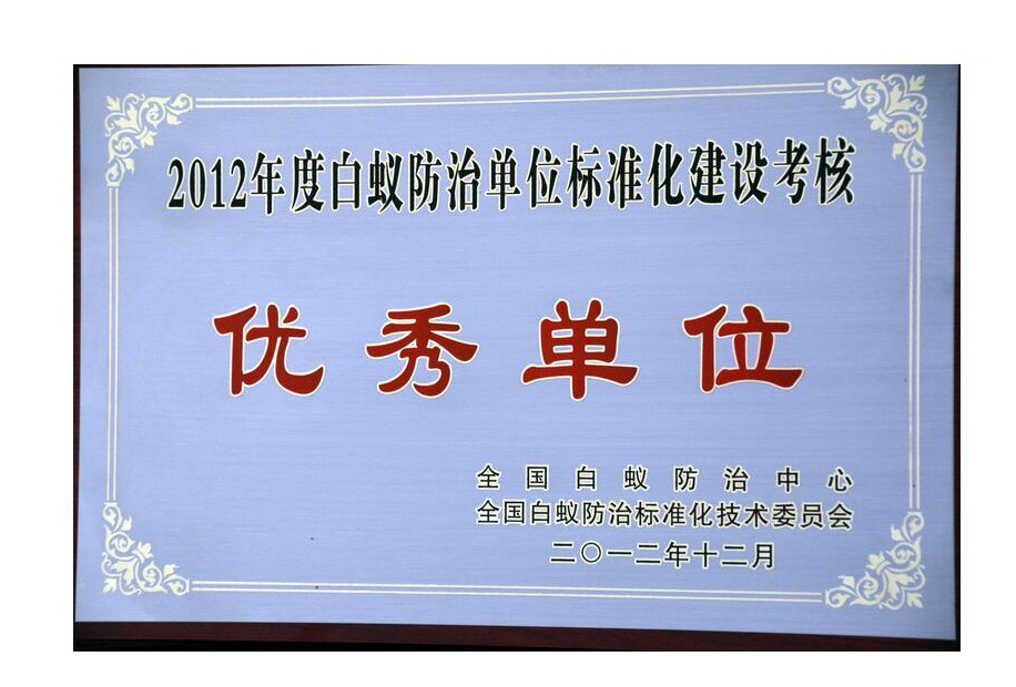 • 2012年度白蟻防治單位標(biāo)準(zhǔn)化建設(shè)考核優(yōu)秀單位